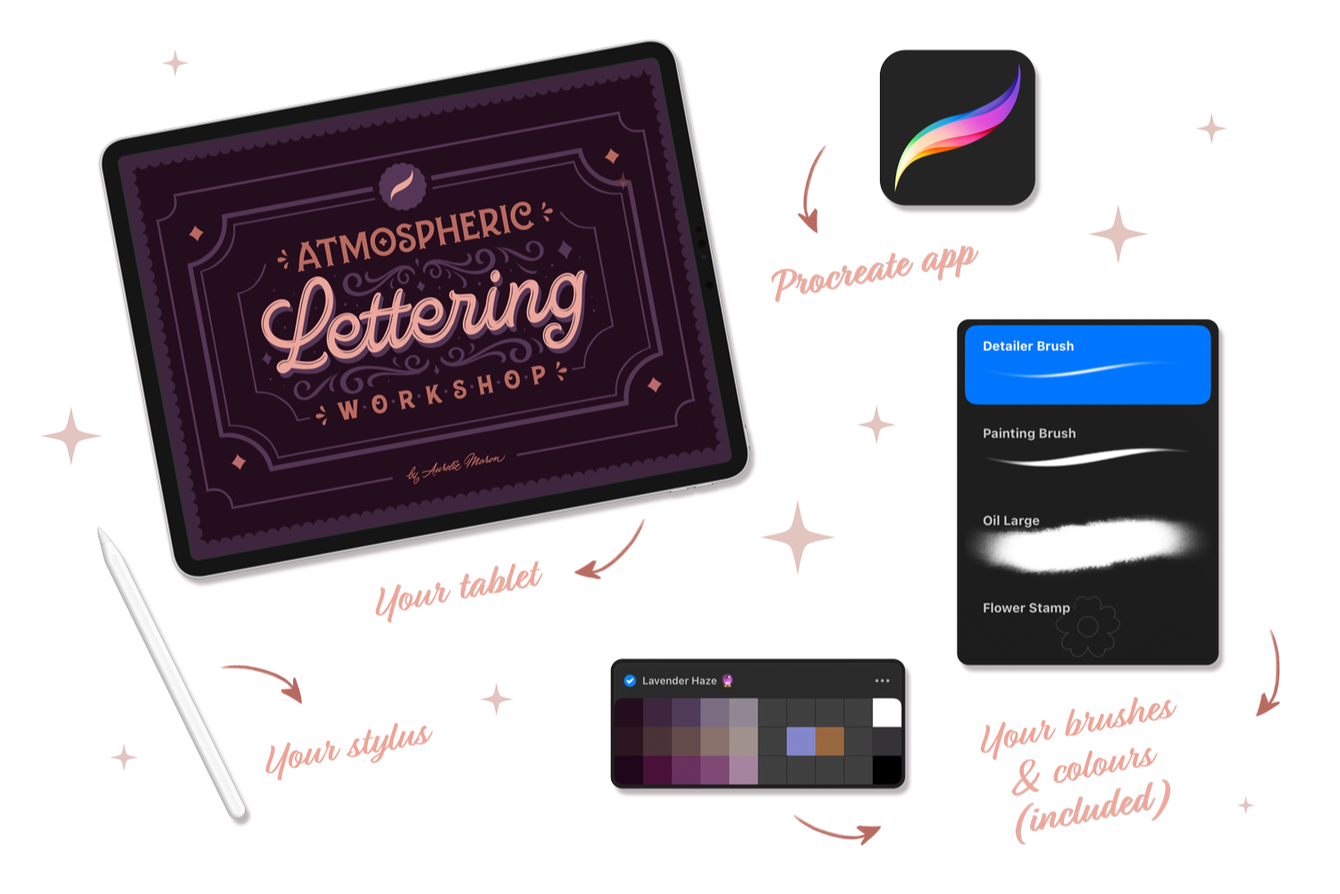 Includes screensavers, templates, Procreate brushes & more.